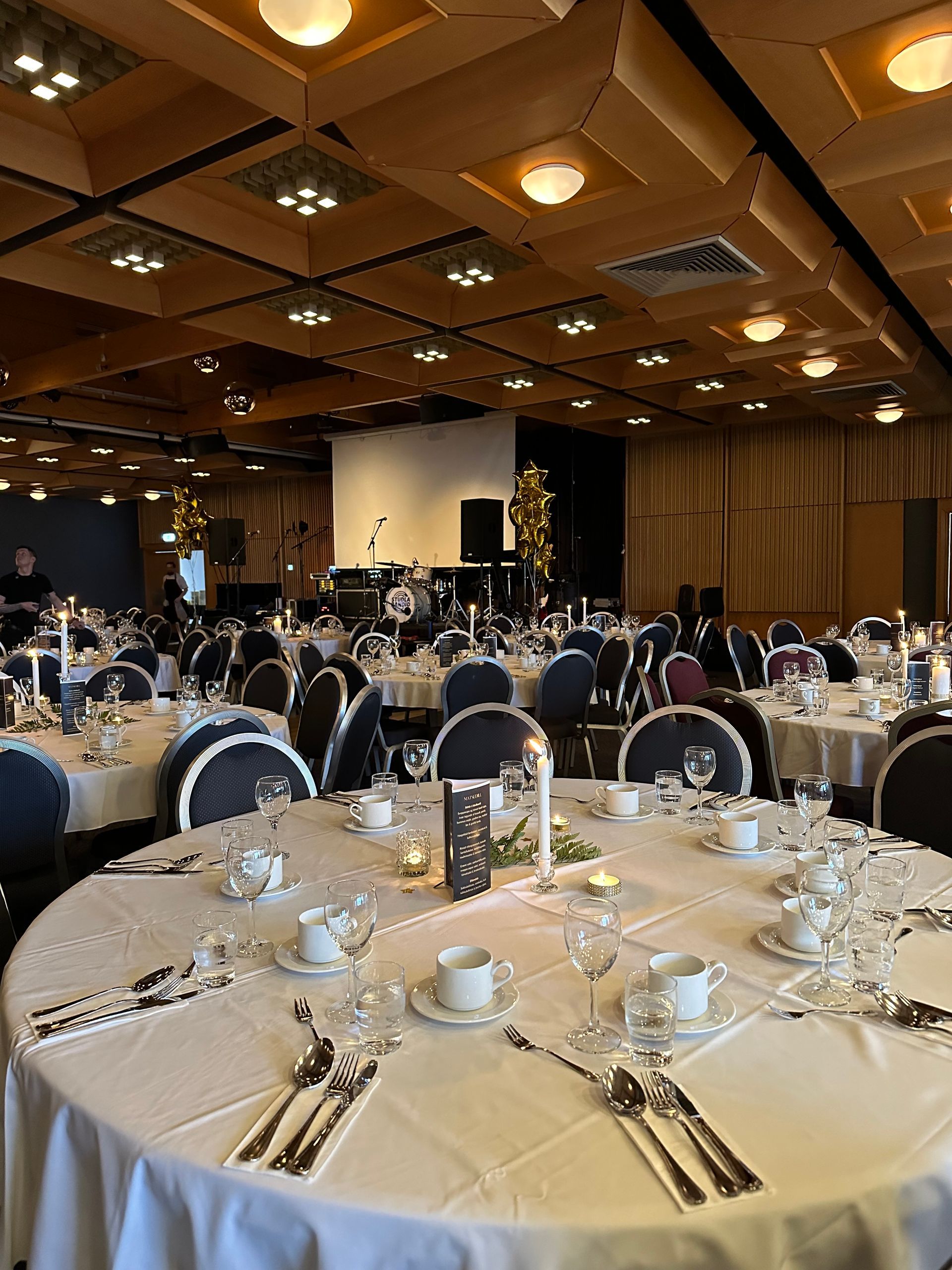 Spanning an impressive 300 square meters, the main room features ample space and includes a generously-sized stage that can be supplemented with a dance floor upon request. This adaptability not only caters to business functions and conferences but also makes our venue a coveted choice for weddings and festive occasions where music and dancing play a pivotal role.